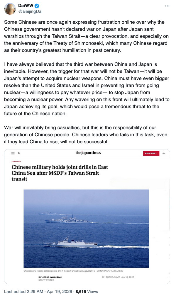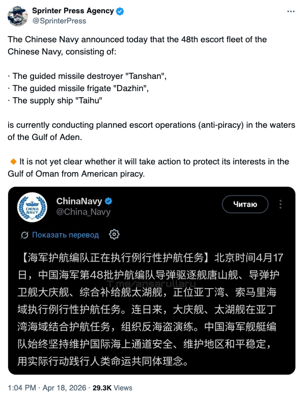 — DD Geopolitics (@DD_Geopolitics) April 18, 2026