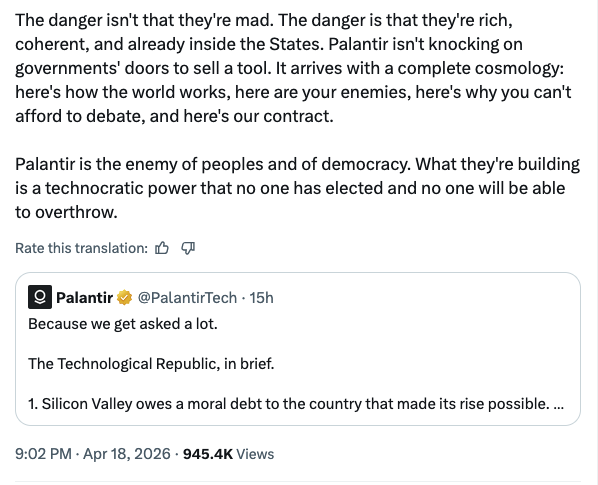 — Global Dissident (@GlobalDiss) April 18, 2026