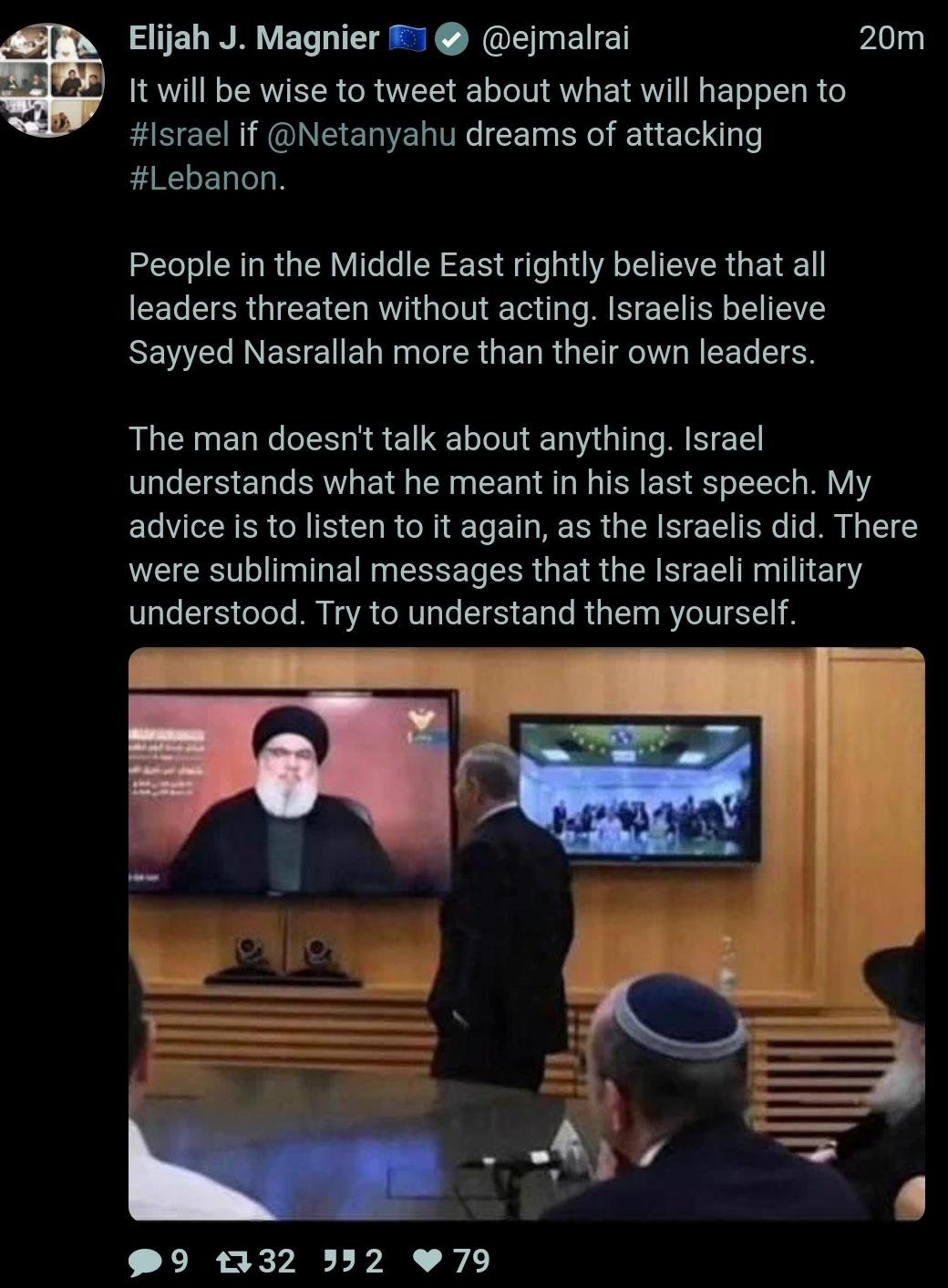 🔸️Nasrallah’s last message: if Anglo-Zionists invade and attack us, “an Eye for an Eye.” Airport for airport, city for city, civilians for civilians. East Med Sea will be shut down like Red Sea – and not just for Zion! For Anglo-Americans and likely complicit Euros… dominoes will fall, leading to Algeria, stoppage of oil from Libya, etc — a Gaza like Siege will fall on the energy supplies of Europe. Trump and Bidon’s long promised Dark Winter🔹️West Bank: