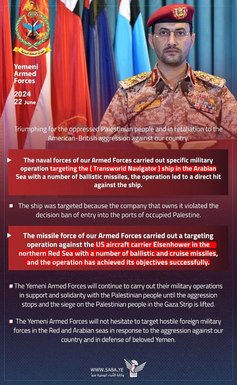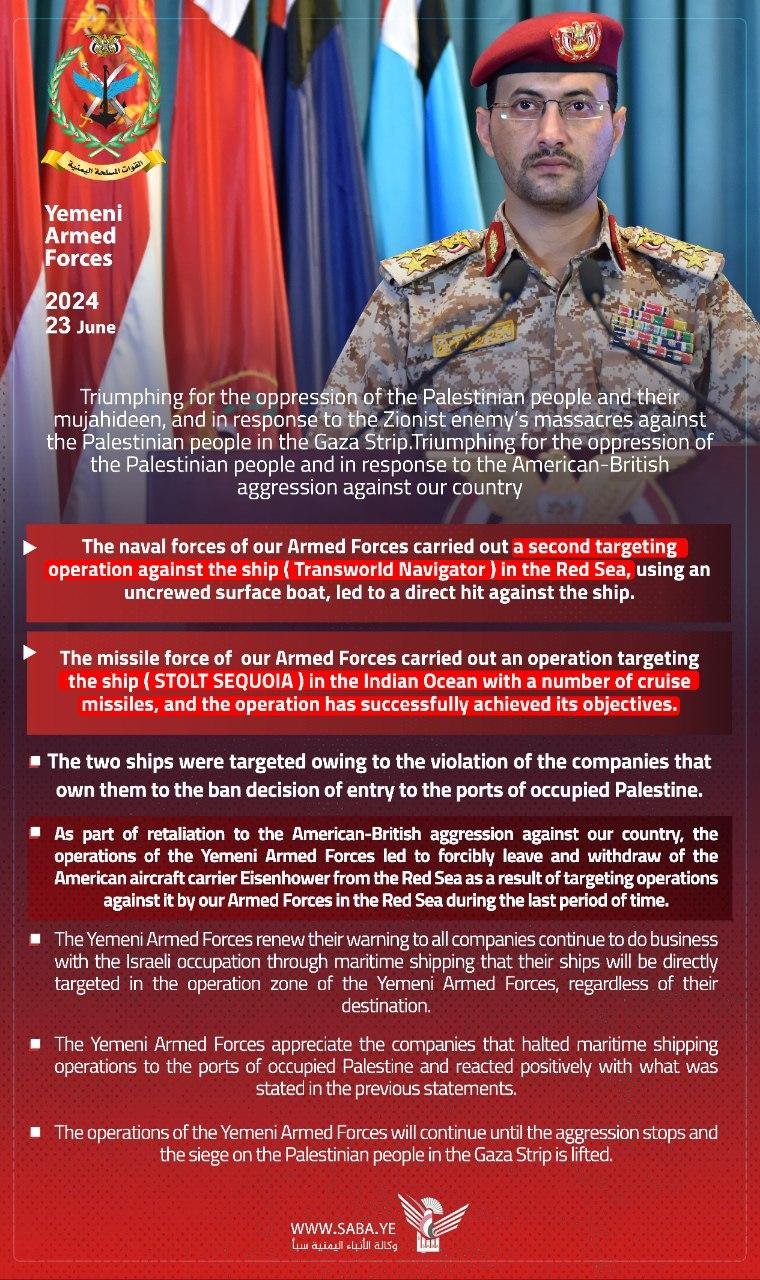 ⭕ 🇾🇪 BREAKING: The Yemeni Armed Forces announce targeting the Israeli “MSC SARAH” ship in the Arabian Sea with a NEW ballistic missile that recently entered service after successful test operations. The hit was direct and successful.