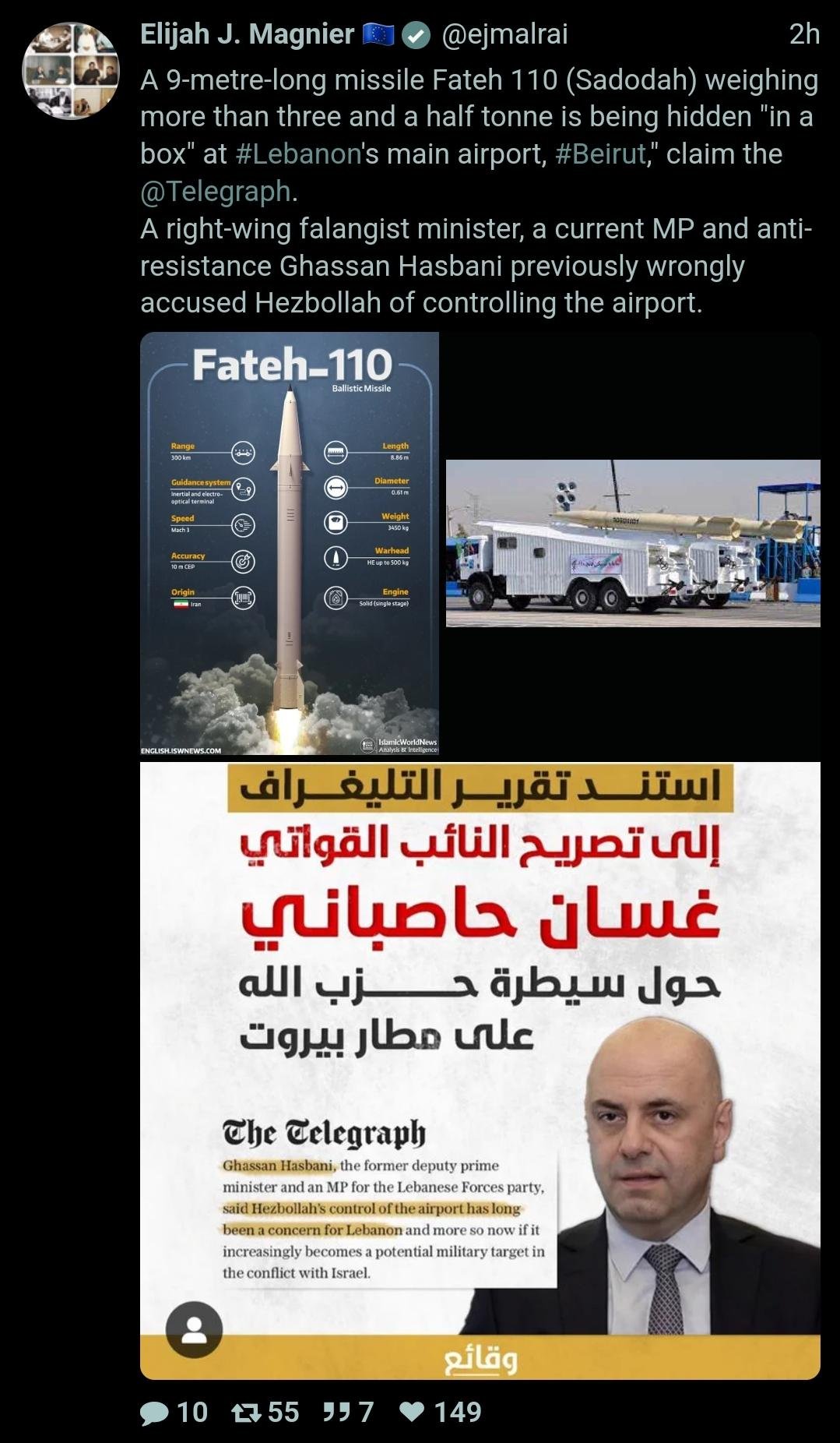 ⭕ CNN reports that during US Secretary of State Blinken’s trip to the Middle East, he told his Arab counterpart that Israel “intends to launch an incursion into Lebanon.”