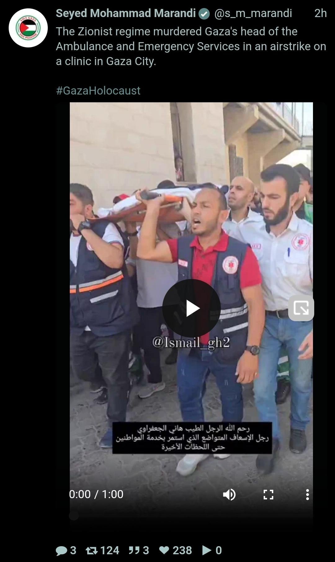 ⭕ The Director General of Water, Environment and Green Spaces for the Municipality of Gaza was assassinated in an Israeli bombardment. Anwar Al-Jundi was also a member of the Emergency Situations Committee and coordinated the work of rescue workers in the Gaza Strip.