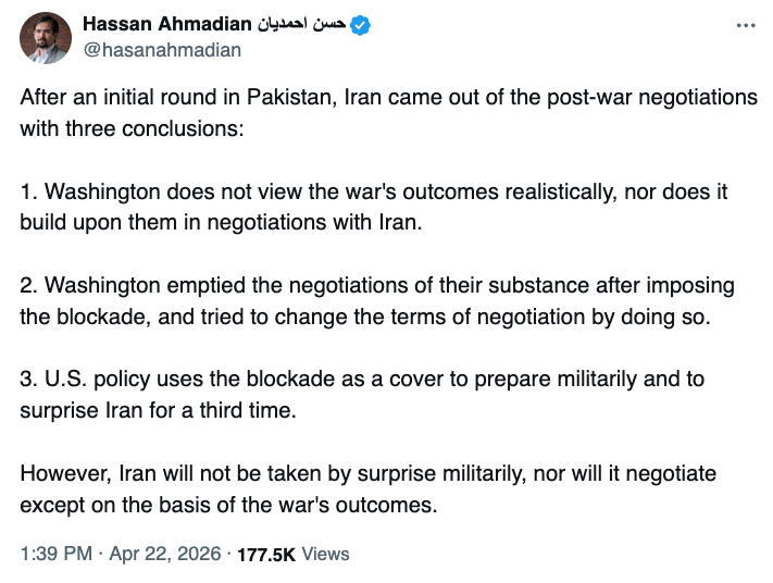 — 𝐄𝐡𝐬𝐚𝐧 𝐒𝐚𝐟𝐚𝐫𝐧𝐞𝐣𝐚𝐝 (@Safarnejad_IR) April 22, 2026