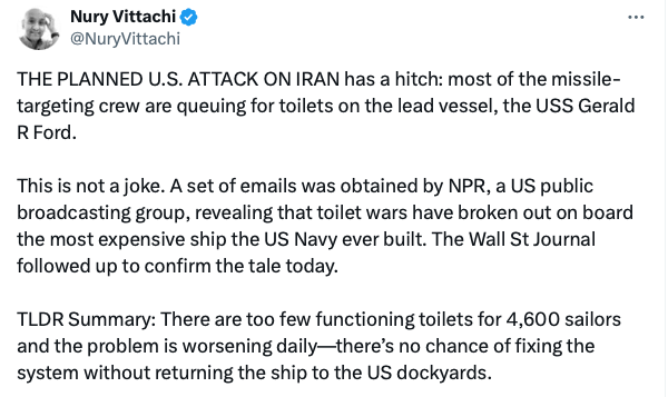 NEW UPDATE on the Sewage apocalypse on USS Gerald Ford toilets.