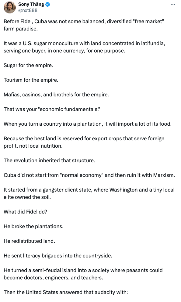 What would Cuba have become without the boot on its neck? Begs the question, what would America look like without the boot? Everyone suffers, ‘ceptin’ the richphucks.