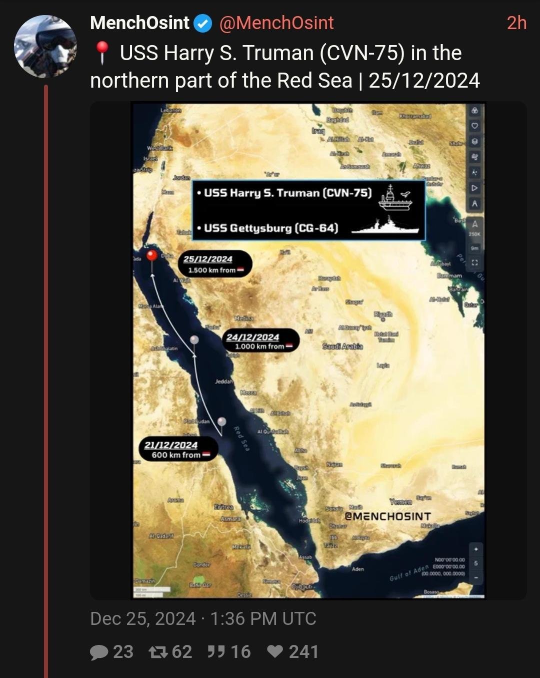 ⭕ Member of the Supreme Political Council in Yemen, Mohammed Ali Al-Houthi tweeted:🔘 USS Harry S. Truman: