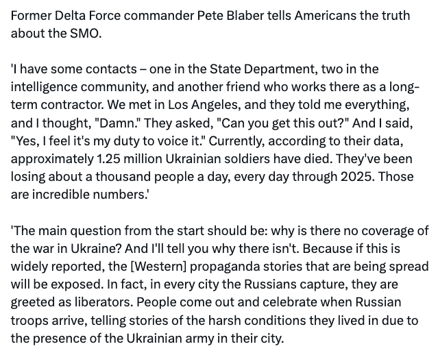 Former Delta Force commander Pete Blaber tells Americans the truth about the SMO.