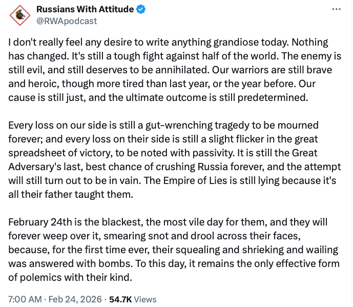 — ๐บ๐ฆะัะณะฐะฝััะบะธะน ัะฒะฐะนะฝะพัะธะฝัะธะป (@POMAHMOBA) February 24, 2026