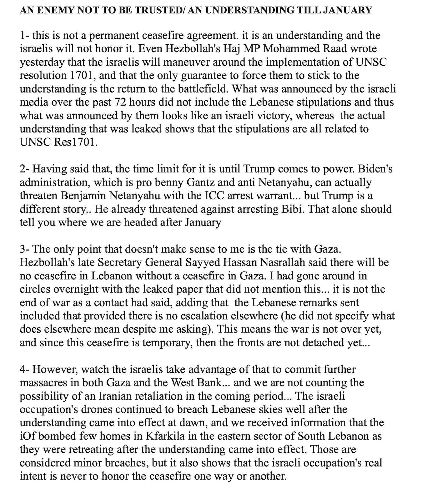 ⭕ Israel and its US protector are making a lot of noise about a possible agreement with the Lebanese Hezbollah, even though the latter has said nothing for weeks. A source close to the Lebanese party reminded us that dead men tell no tales. The big bosses in Atlantic City (long since deserted by the Italian mafia and replaced by the Chabad mafia) are pushing things in the direction of an agreement, but it seems that Hezbollah has not yet said its last word.