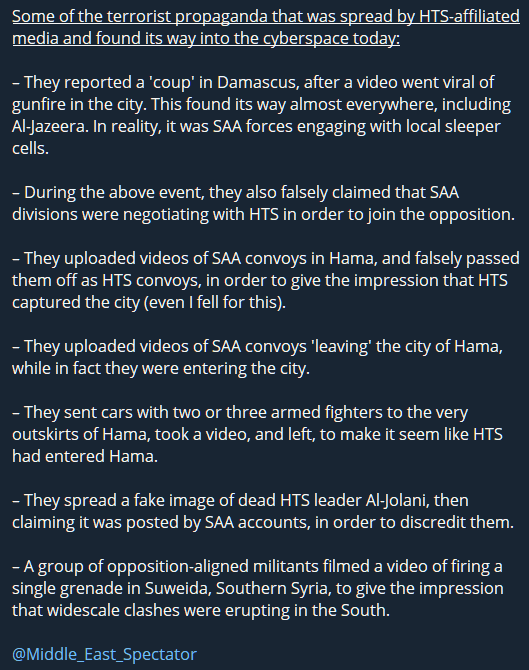 - This NATO offensive was long expected given lack of secrecy by their exceptionalist proxies (as subtle as zionazis boasting about Genocide to take place during last Oct 2023). However, the rapidity of advance was in part fault of Syrian conscripts who’d just replaced Iranians on western flank of Aleppo. These raw soldiers were frighted by PsyOps..