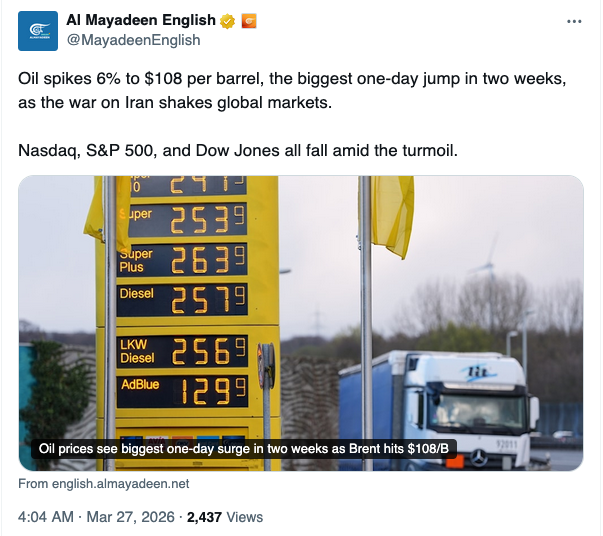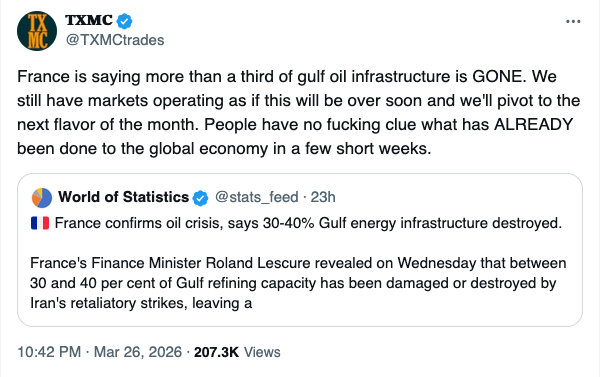 — The Kobeissi Letter (@KobeissiLetter) March 26, 2026