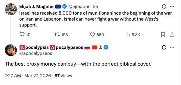— ๐ ฐpocalypsis ๐ ฐpocalypseos ๐ท๐บ ๐จ๐ณ ๐ (@apocalypseos) March 26, 2026