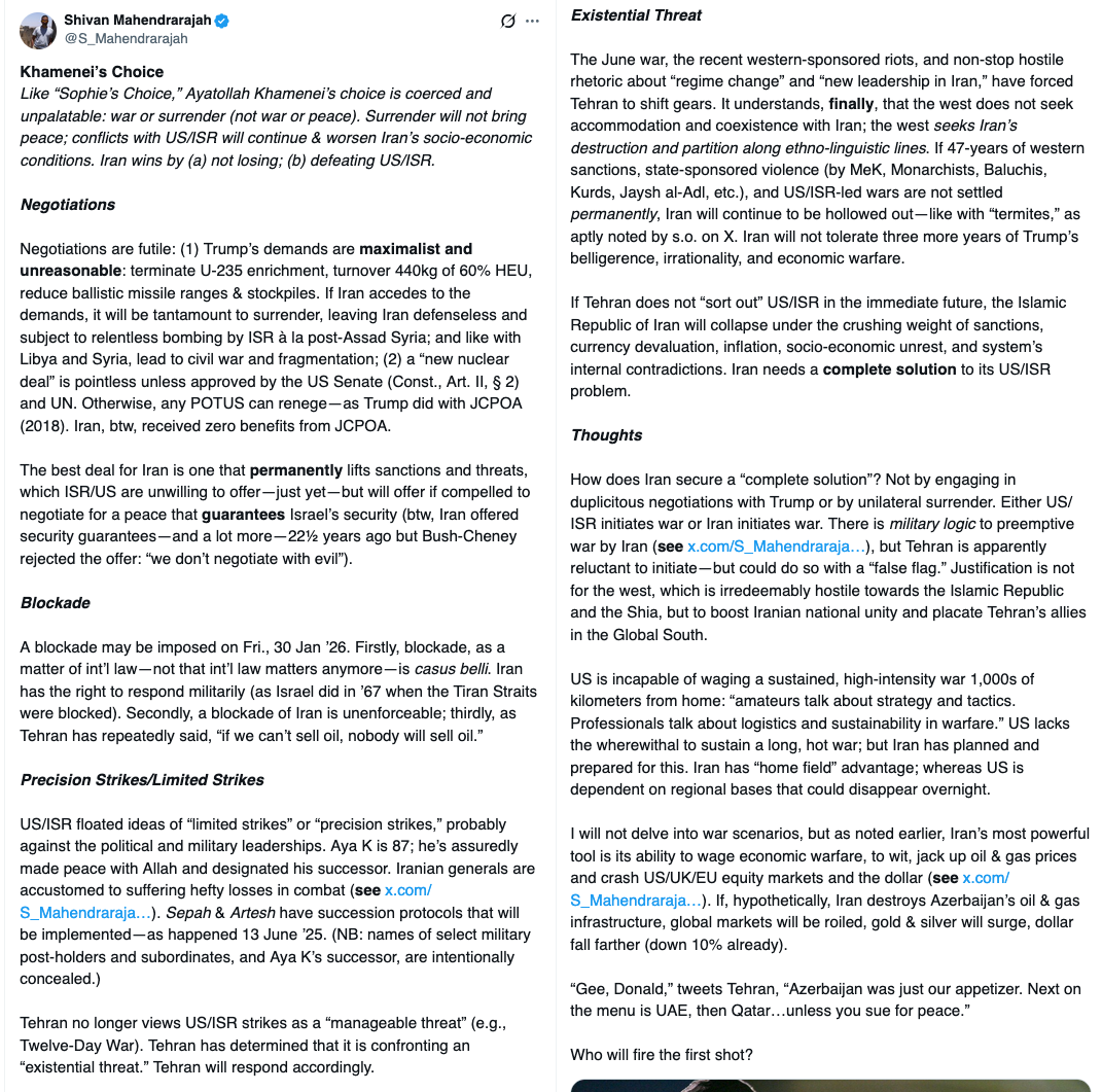 This is an excellent summary of the current situation in Iran by Shivan Mahendrarajah @S_Mahendrarajah.