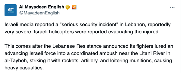 Hezbolรก Embosca una patrulla de Israel pic.twitter.com/amMAN4qKUN