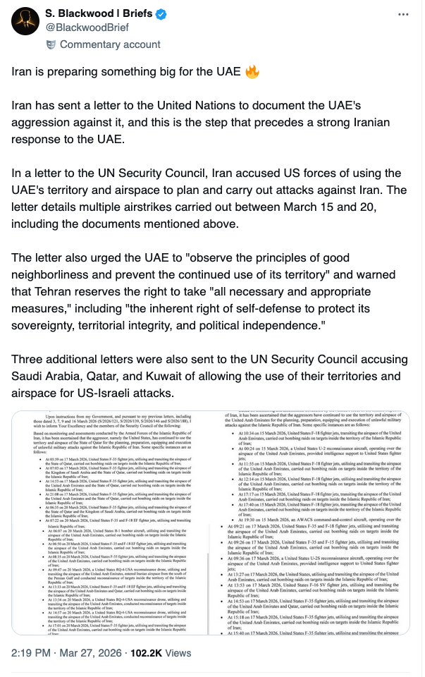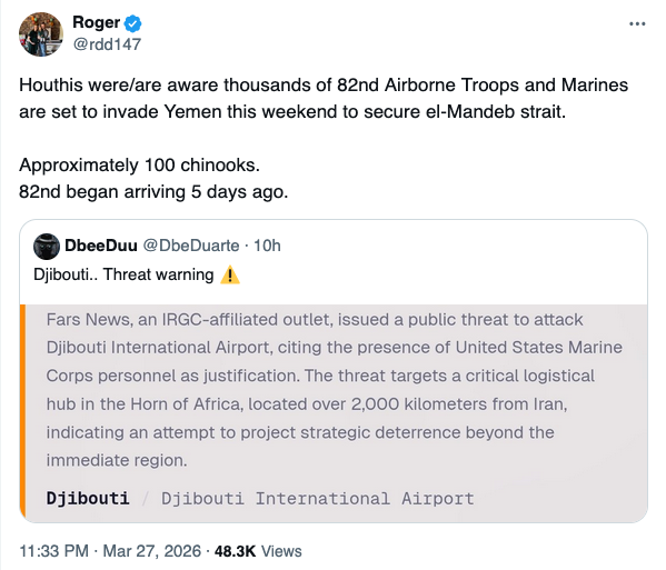 — DD Geopolitics (@DD_Geopolitics) March 27, 2026