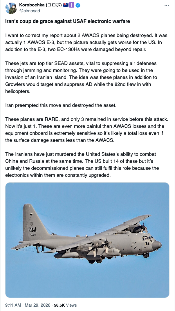 Participantfyi… kaputski EC 130 H Compass Call flyers…….https://en.wikipedia.org/wiki/Lockheed_EC-130H_Compass_Call