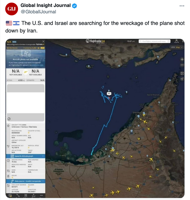 According to initial reports, the jet fell between Hengam Island and Qeshm Island and sank into the depths of the waters of the Persian Gulf. pic.twitter.com/z8pnzYcmcr