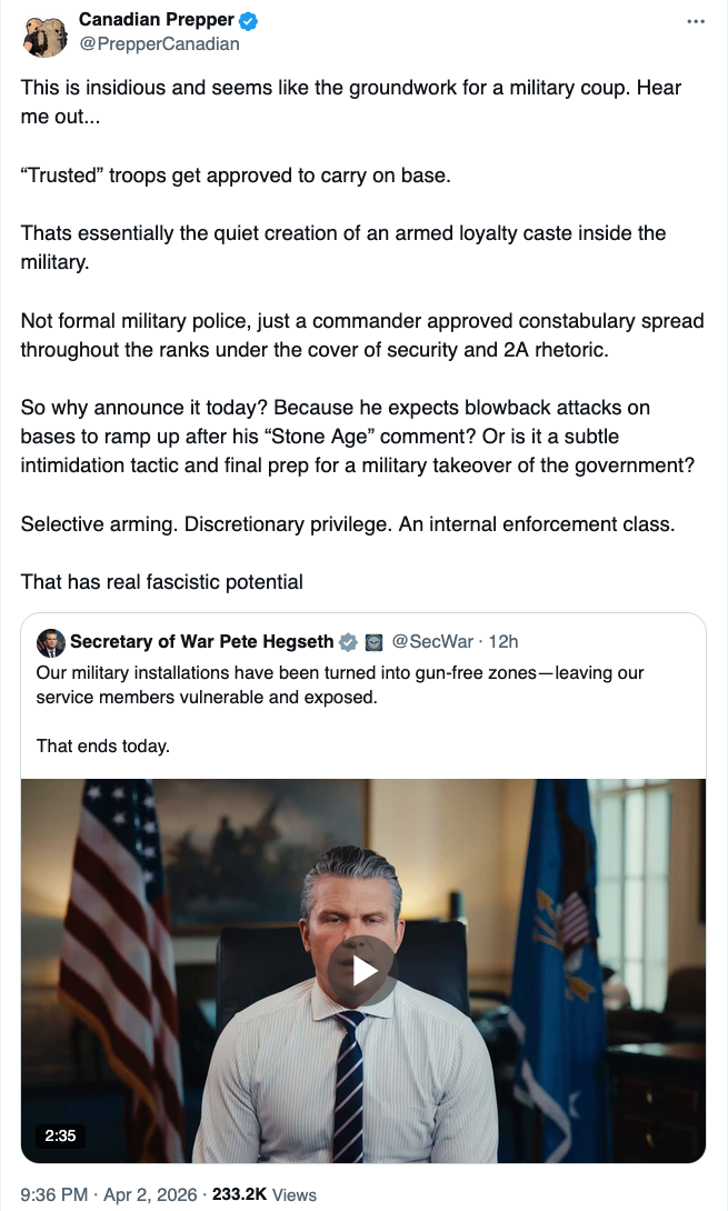 — Canadian Prepper (@PrepperCanadian) April 2, 2026