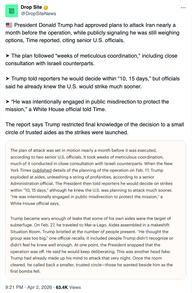 https://x.com/DropSiteNews/status/2039781107936231648?s=20