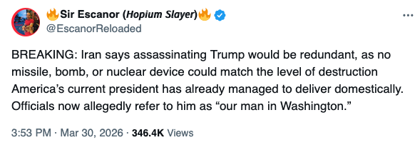 pic.twitter.com/XDOmu9FiHT— The Enforcer (@ItsTheEnforcer) March 30, 2026