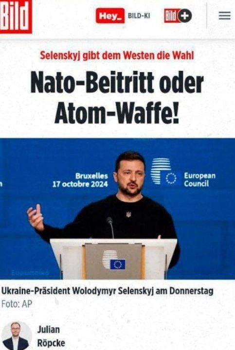 ⭕️ The Kiev regime wants to regain its status as a nuclear power. According to Germany’s Bild Zeitung, the first nuclear warheads will be available one way or another within a few weeks.