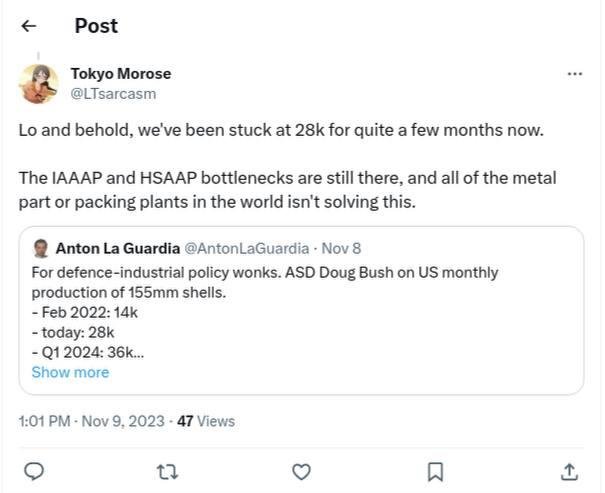 ⭕ “Outside of mineral constraints, there are only two facilities capable of producing military grade explosives in the entirety of the United States, neither of which have been modernized in decades and don’t have expansion plans until the end of this decade.There is a reason, after all, the U.S. keeps missing it’s production targets…”