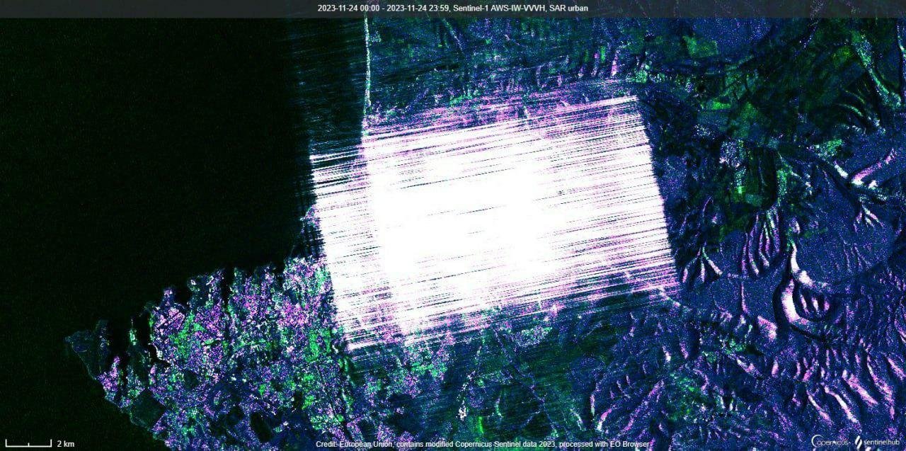 ⭕ And so on the 24th, the European satellite Sentinel-1 tried to take an image of Sevastopol in the radar range – only then a surprise awaited it.The Sentinel is equipped with a radar that allows it to form an image of the earth’s surface even in conditions of interference. This radar operates at a frequency of 5.405 GHz. Accordingly, any radiation (primarily from military radars) at close frequencies creates interference for the satellite radar.