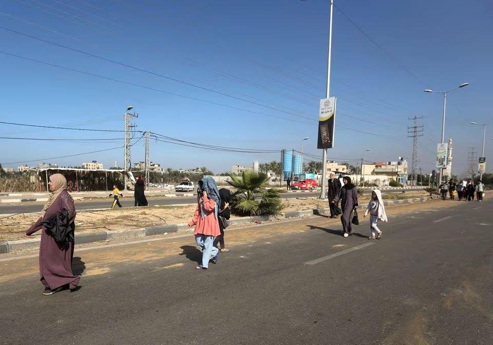๐ผ The picture shows a mother and child holding hands walking among the ruins of the destroyed city of Gaza.