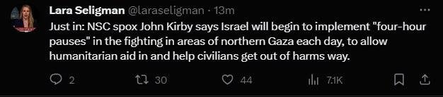 The fix is in. Blinken tours leisurely to buy time for more genocide and efficiency of ethnic cleansing.. But can they force the population to leave??? And do they the time before the war expands to thoroughly neutralize Hamas?? And the Palestinians and Yemenis haven’t shown their cards yet. All that has been achieved to date is thorough exposure of local Quislings, fellow-traveller supranationalists and Zionists in arab garb, without fealty to faith, kin or neighborliness. And this was well known to the discerning since at least WW1