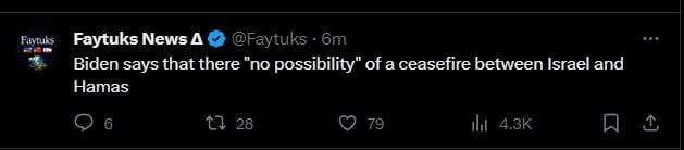 โก๏ธThe Israeli Army:ย The Israeli army said it had recorded about 30 launches from Lebanon in the last hour and was returning fire.“…There is reason to believe that the Biden Administration is dissimulating and creating false narratives in the media โ feigning differences with Netanyahu, etc. โ ย while in reality, the Israeli plan is very much in Blinkenโs talking points in the diplomatic engagements behind closed doors, especially with the wealthy Gulf countries who would be called upon to” bankroll the settlement of Gazaโs displaced population in Sinai.”ย