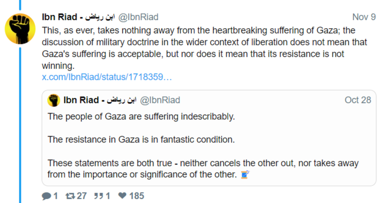 The Palestinians are the ones who decide the success of any operation against the zionist entity, and all hope for victory lies with them.ย [listen carefully to this last statement, those of you who keep holding out hope for the GCC, Egypt, Jordan, Turkey, etc.. It is Greater Shaam (Greater Syria, consisting of Syria, Lebanon, Palestine and Jordanian non-elites) in coordination with Yemen and Iraqi militias, which will be decisive. And they can wage wars of successful attrition, forcing out the Zionists, being sufficient to the task. Only AFTER the West is purged from West Asia and loses the petrodollar, will the other compradore arabs implode and see regime changes…]ย