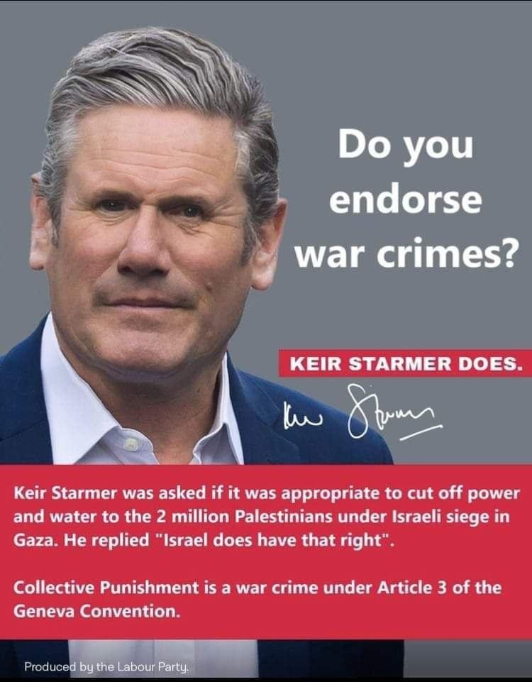 The public stance of the British Labour Party leader.. today a reported [1M?] marched in London for Palestine
