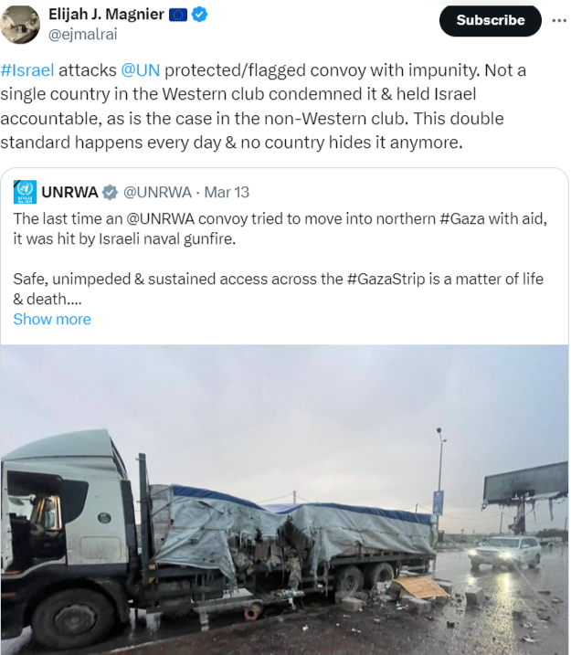 Home – Global Blog › Forums › The Hearty Salon › West Asia front Thread, 12 March 2024