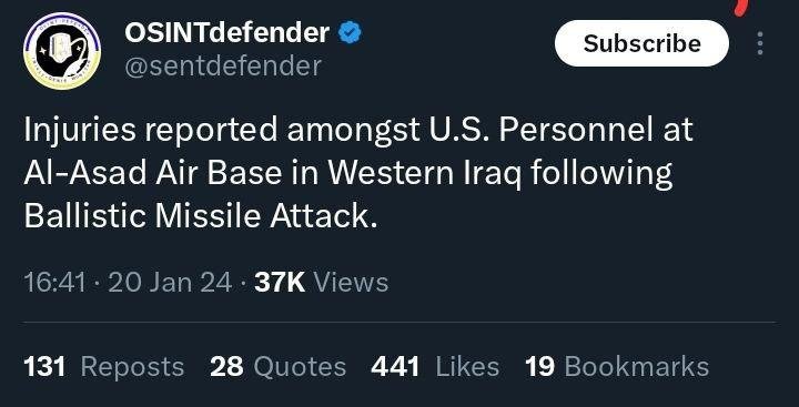 โญ ๐ CENTCOM: US Forces bombed Kataib Hezbollah facilities in Iraq, in response to the attack on Ein al-Asad US Airbase in western Iraq, a few days ago.
