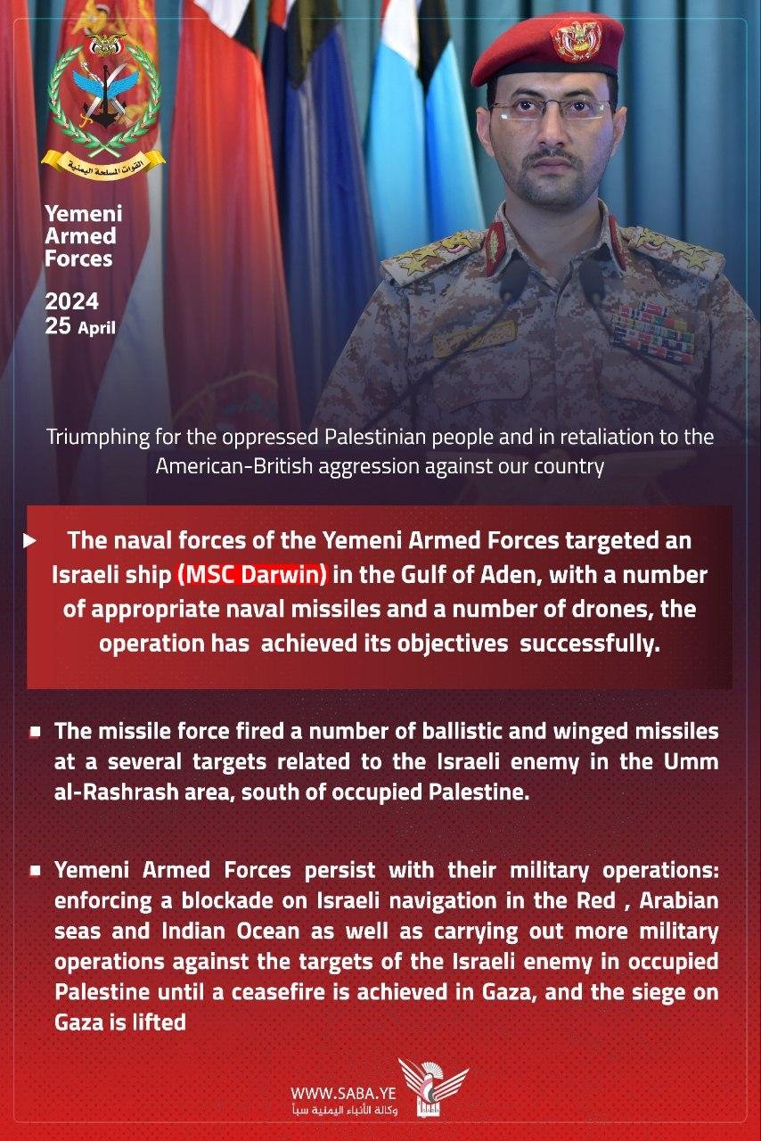 โญ โก๏ธJUST IN: The Yemeni Armed Forces announce 2 operations, the targeting of: