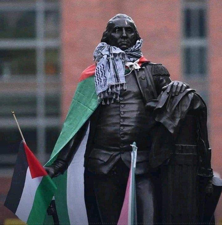 โญ The statue of George Washington in the colors of the Palestinian flag.If he were still alive, George Washington, a Grand Master of Freemasonry, would certainly have supported international Zionism.