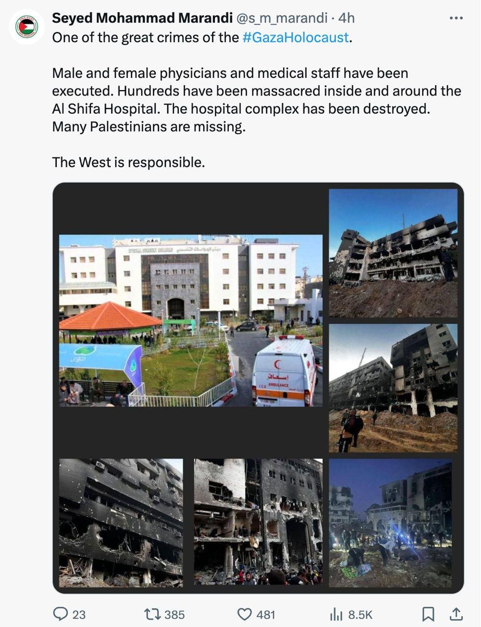 ⭕ Gaza: Israeli forces have begun executing medical staff at Shifa Hospital.