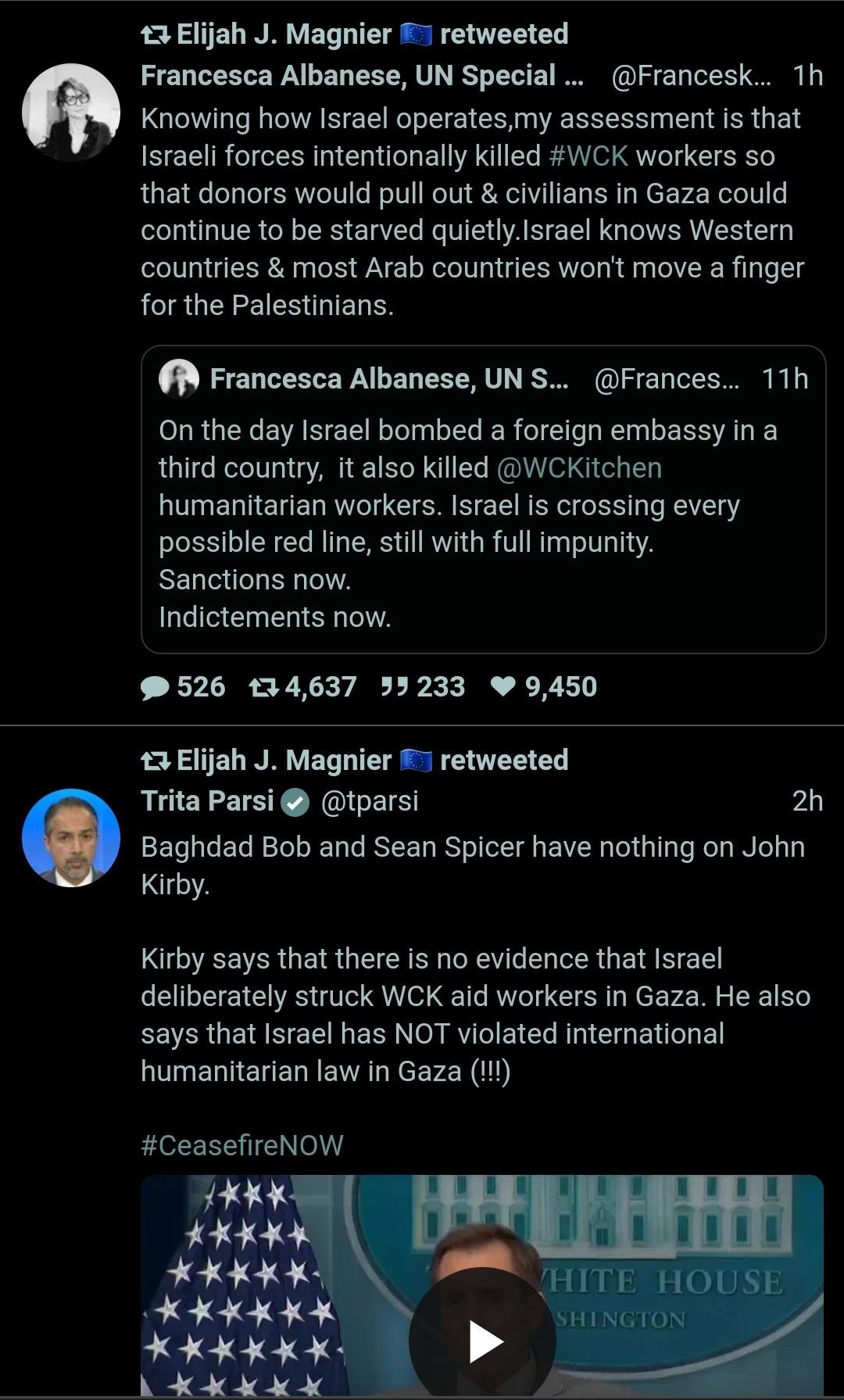 ⭕ Retweet: It doesn’t have to be this way. There are land crossings into Gaza which could be opened by Israel, aid could be distributed safely if there was a ceasefire. People like Zomi and Damian and Saif – the 196 slain aid workers – would not have been killed