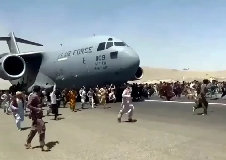This looks like Afghanistan without the visuals but people are running next to the airplanes while the airplanes are trying to escape.