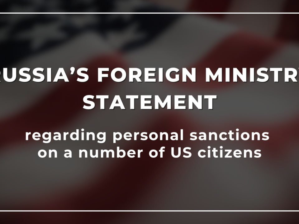 Russia’s Foreign Ministry statement (https://mid.ru/en/foreign_policy/news/1966912/) regarding personal sanctions on a number of US citizens