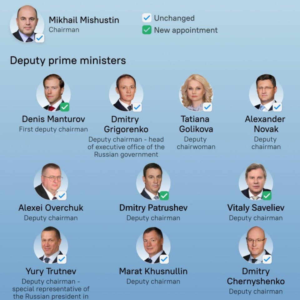 May 14 2024 New Russian Gov in pics Byamarynth InRussia There are no serious complaints about the lineup. Perhaps they are still coming but so far so good. 4